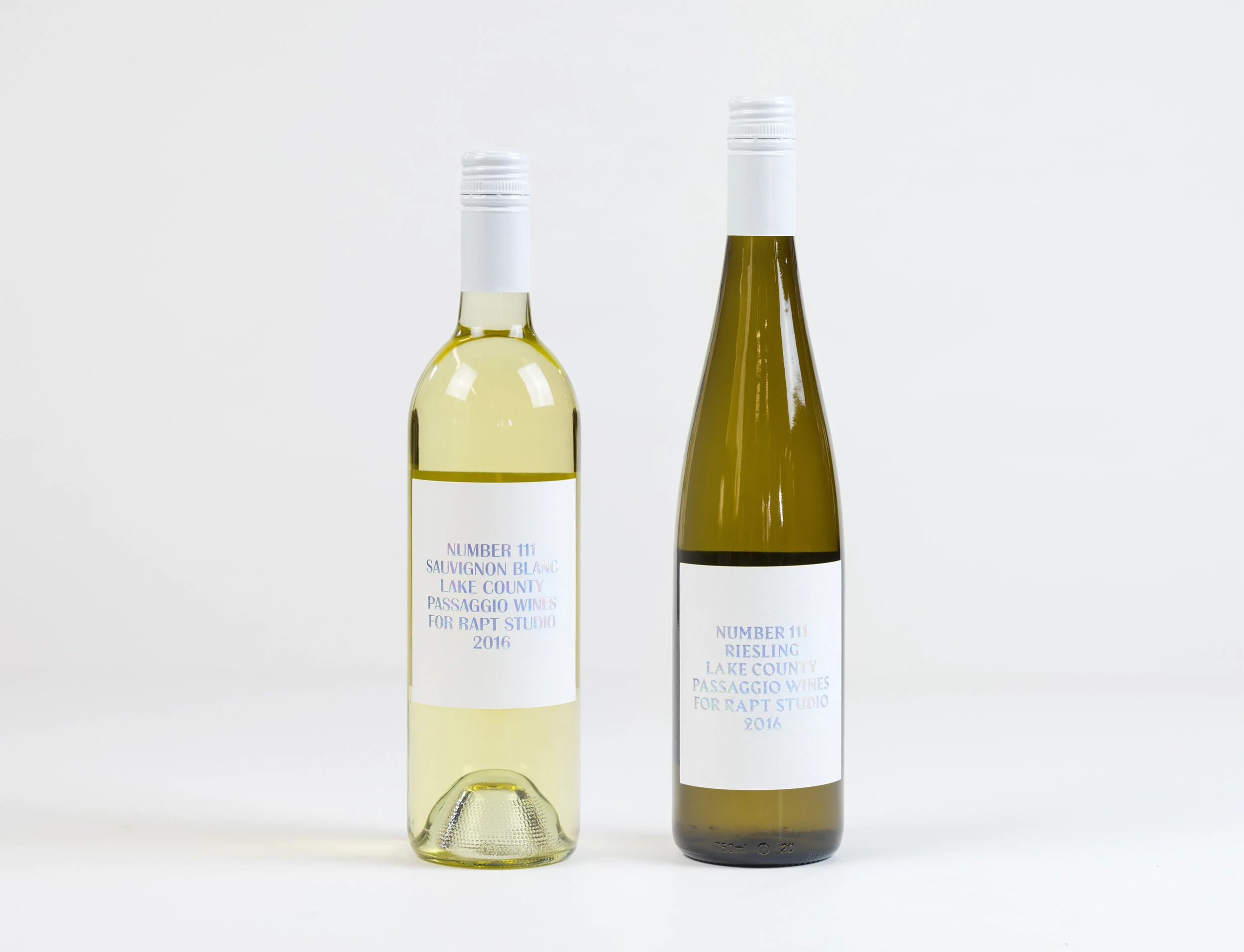 Wine labels designed for two custom wines that were produced for Rapt Studio. Each wine is paired with a unique font that complements the origin and personality of the wine, while the use of holographic foil complements the bright and colorful days of Spring and Summer, which is when these wines were meant to be enjoyed. The wines were packaged in custom printed wine bags and given to select clients.
